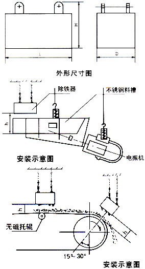 適合沒有輸送皮帶,物料中含鐵較少且只能提供下料溜槽的場合。主要應(yīng)用于水泥、化工、煤炭、塑料、耐火材料、建材等行業(yè)的下料管道中清除雜物。技術(shù)特點(diǎn):聚磁復(fù)合磁第,雙磁極結(jié)構(gòu),弱場強(qiáng)度高,吸力大。磁極吸附面積大,保障有足夠時間從運(yùn)行物料中吸起鐵雜物。管道為全密封結(jié)構(gòu),除鐵器外置安裝,避免長期連續(xù)使用使除鐵器磨損。體積小,重量輕,安裝方便,除鐵干凈,維護(hù)簡單。