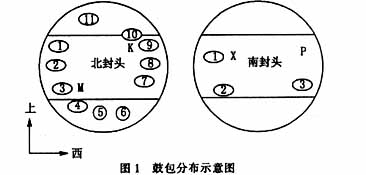 mm處,即位于橢圓封頭的直邊部分與橢圓部分的分界線附近,多數(shù)位于鋼板母材上,個(gè)別位于拼接焊縫上,分布位置見圖1。
