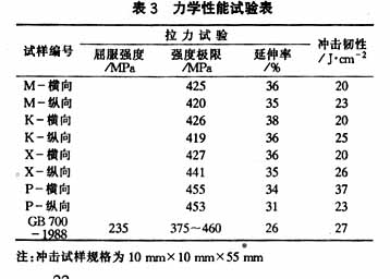 ?梢钥闯,材料的強(qiáng)度極限、延伸率還在正常合格范圍內(nèi),而材料的沖擊韌性已低于GB 700-1988規(guī)定的下限。但在此除氧器制造時(shí),