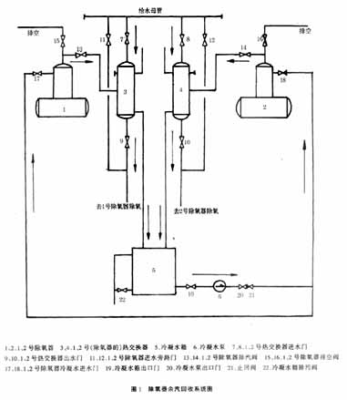 e當(dāng)熱交換器需要檢修時(shí),應(yīng)開啟閥門11、15(或12、16),關(guān)嚴(yán)7、9、13(或8、10、14),除氧余汽排空,維持生產(chǎn),待檢修完畢后,再投入本系統(tǒng)。