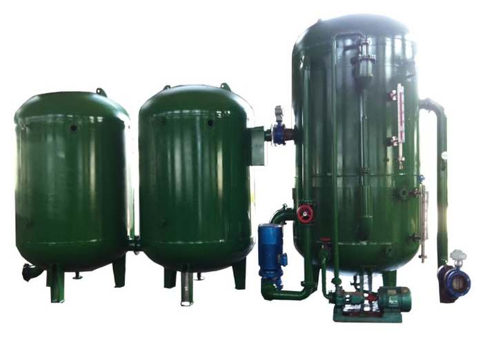 一、除氧器用途 旋膜式除氧器是噴霧填料式除氧器的更新產(chǎn)品,是一種新型旋膜除氧器,旋膜式除氧器原理是化學補水、凝結水經(jīng)旋膜器呈螺旋狀按一定的角度噴出與加熱蒸汽進行熱交換旋膜除氧,將給水加熱到對應除氧器工作壓力下的飽和溫度,除去溶解于給水的氧及其它氣體,防止和降低鍋爐給水管、省煤器和其它附屬設備的腐蝕。電力部GB1576-2001【電站壓力式除氧器安全技術監(jiān)察規(guī)程】,對除氧器含氧量提出了部頒標準,一種新型旋膜除氧器給水含氧量≤15цɡ/L,高壓除氧器給水含氧量應小于7цɡ/L。