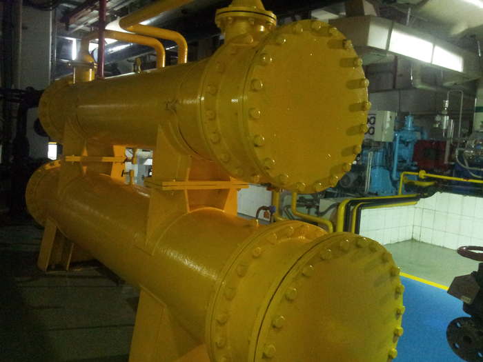 齒輪油冷油器清洗,冷油器清洗 冷油器怎么清洗 齒輪油冷油器清洗 冷油器清洗公司◆◆◆連云港市宏慶電力輔機開發(fā)有限公司◆◆◆【連圣華康牌】冷油器膠球清洗---冷油器膠球清洗裝置---膠球清洗冷油器冷卻管水垢,消除冷油器冷卻管水垢有著豐富的經(jīng)驗。有專業(yè)設(shè)計安裝隊伍,從事冷油器--熱交換器冷卻管清洗數(shù)十年。冷油器是降低潤滑油和抗燃油溫度的表面式熱交換器。工業(yè)設(shè)備上的冷油器大多采用循環(huán)水冷卻器,使用后油冷卻器冷卻管結(jié)水垢后,換熱面積冷卻效果大幅下降,導(dǎo)致齒輪油---潤滑油油---汽輪機油---空壓機油溫快速升高,導(dǎo)致齒輪油---潤滑油油---汽輪機油---空壓機油老化+變質(zhì)+失效。增大了設(shè)備磨損,通過化學(xué)方法進行冷油器清洗除水垢,工緒繁雜,增加了工人的勞動強度,【連圣華康牌】冷油器膠球清洗裝置清洗冷油器冷卻管安全干凈,效果顯著,冷卻器清洗除水垢后,冷卻器油溫正常,消除了油前老化變質(zhì)導(dǎo)致設(shè)備磨損的隱患。選用【連圣華康牌】冷油器膠球清洗裝置,訂貨后由技術(shù)部門派技人員指導(dǎo)客戶自行進行冷油器膠球清洗裝置安裝,并對客戶指導(dǎo)調(diào)試,設(shè)備安全穩(wěn)定運行,效果好!具B圣華康牌】冷油器膠球清洗裝置凈化度高。 ★★【連圣華康牌】冷油器膠球清洗裝置的組成: ①精密過濾器/精密濾水器,主要用于冷卻水的雜質(zhì)過濾。 ②收球器/收球網(wǎng),主要是把冷卻水中的膠球攔截下來回收至蓄球器。 ③蓄球器/裝球室,主要用途是蓄球--收球和觀察膠球的運行情況。 ④膠球泵/膠球輸送泵,主要用途是把膠球投送至冷卻水中,讓膠球?qū)鋮s管水垢進行有效沖洗。 ⑤球閥,主要為投球和收球隔斷水源。 冷凝器清洗工藝流程 ★★★【連圣華康牌】冷油器膠球清洗裝置的工作原理 冷油器膠球清洗裝置選用合適的膠球--剝皮膠球--硅化膠球--金鋼砂膠球,將膠球從裝球室手孔處投入裝球室內(nèi),投球數(shù)量為主機[冷凝器|蒸發(fā)器]冷卻水管數(shù)的10%左右。先打開收球網(wǎng)的收球閥和投球閥,關(guān)閉放水閥,然后啟動膠球泵,再打開裝球室上的排氣閥,排完裝球室內(nèi)的空氣,關(guān)閉排氣閥,當(dāng)冷卻水正常運行時慢慢打開裝球室的切換閥,切換閥不宜過猛切換,過猛切換會導(dǎo)致[投入球數(shù)量過多]收球網(wǎng)堵球。膠球在冷卻水流帶動下進入凝汽器水室。膠球在冷卻水進出口壓力差的作用下跳動洗刷冷卻管內(nèi)泥沙污物,對冷卻管內(nèi)進行一次有效抹擦,使冷卻管內(nèi)壁泥沙污垢隨著水流帶出,膠球經(jīng)冷卻水的帶動下進入收球網(wǎng),收球網(wǎng)將膠球分離出來,膠球泵將膠球重新吸入裝球室,按此規(guī)律往復(fù)循環(huán)對中央空調(diào)主機[冷凝器|蒸發(fā)器]冷卻水管進行連續(xù)清洗,運行時間一般控制在≥20分鐘 。